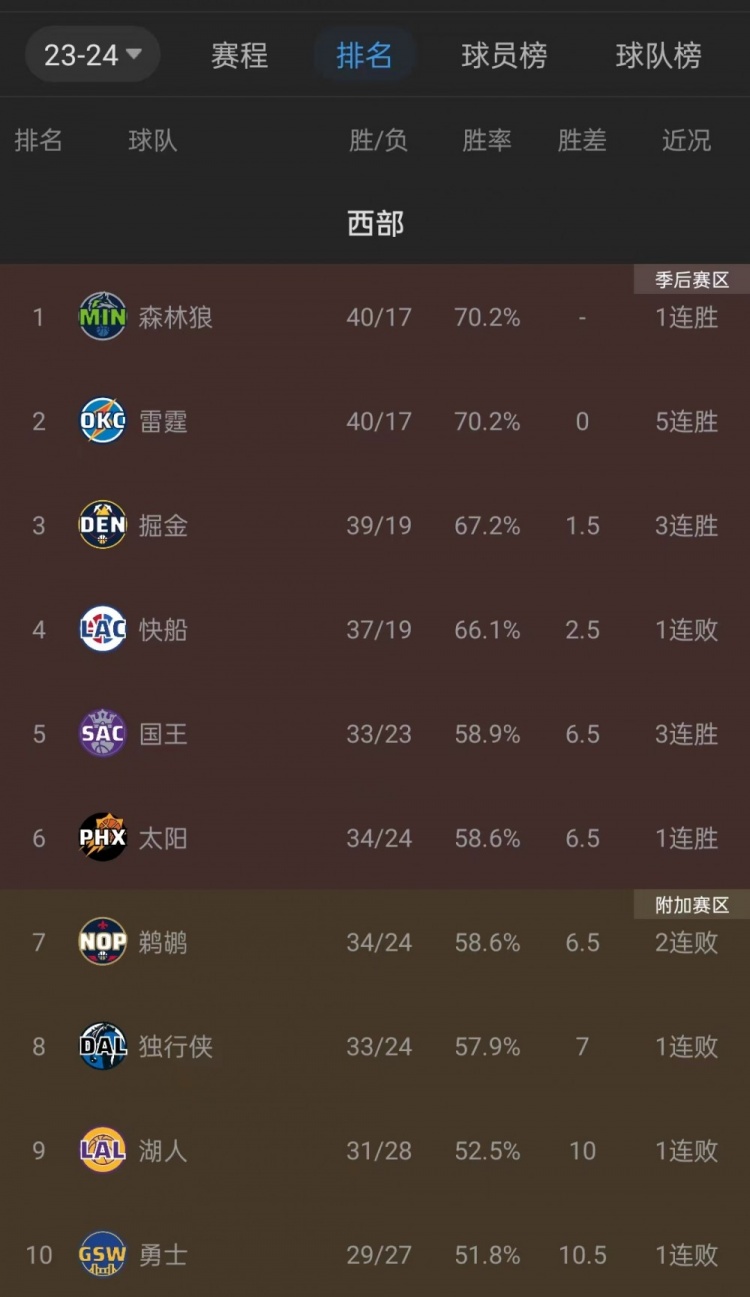 西部第五依然火热!国王队获胜后 太阳队被反超 跌至第六位