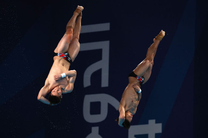 2月5日消息:2024年卡塔尔泳联世锦赛,男子花样3米板,中国组合王宗源/龙道获得冠军。